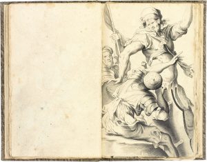 Très beaux dessins, finement exécutés, représentant 26 soldats, 8 vases et 5 sculptures, celles-ci titrées au verso : Un Satyre qui danse, Galathée, Le Point du jour, Milon Crotoniate et Bacchante.Mouillure marginale.