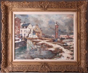 Huile sur toile, 48,5 x 63,5. Signée «M. de Lincé» en bas à droite. Titrée au dos avec l’annotation «Marcel de Lincé 117 rue de Fétinne Liège atelier rue Darchis 60». Dans un cadre orné vieil or. En bonne condition.