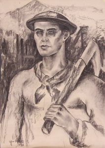 Dessin au fusain, 72 x 50. Daté «1947» et signé «L. Hock» en bas du dessin. En belle condition.