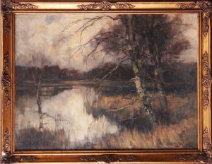 Huile sur toile, 60 x 80. Signée «Ludovic Janssen» en bas à droite. Datée «Genk. 3-1927» au dos. Dans un cadre orné doré. Peintre de paysages, aquafortiste, dessinateur et illustrateur, né à Liège en 1888 et mort en 1954. Elève de Carpentier et d’Adrien de Witte à l’Académie de Liège. Il fut un peintre de la Campine (Arto).