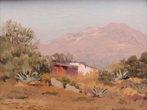 Huile sur carton, 36 x 46. Signée «Fernand Vetcour» en bas à droite. Titrée au crayon au dos. Dans un cadre de bois cérusé. Né à Liège en 1908, le peintre Vetcour y fut élève à l’Académie, où il devint professeur. Peignant surtout des paysages, il trouva notamment son inspiration en Espagne, dans le Midi de la France, ou, comme ici, en Corse. Il mourut en 2001 (Arto).