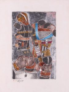 Collage et technique mixte, 65 x 49 (sujet : 46 x 30). Signé «Collignon. 87» en dessous à gauche. Pièce en très belle condition. Sous verre, cadre aluminium noir (légèrement abîmé au coin supérieur gauche, vitre comprise).