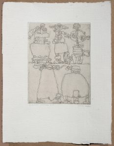 Gravure au burin sur papier fait main 34 x 26,5. Titrée, datée et signée au crayon en bas. Très fraîche. Joint : P. COURTIN. Sans titre. Gravure au burin sur papier fait main 27,5 x 21. Justifiée 13 / 75, et signée au crayon en bas. Peintre et graveur français né en 1921 et mort en 2012.