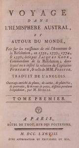 COOK (James). Voyage dans l’hémisphère austral, et autour du monde, fait sur les vaisseaux de roi L’Aventure et la Résolution, en 1772, 1773, 1774 et 1775; écrit par Jacques Cook, Commandant de la Résolution; dans lequel on a inséré la...