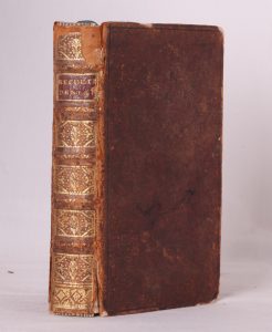 Paris, chez Antoine Boudet, rue Saint Jacques, 1746. In-12 (16 x 10), plein veau de l’époque (reliure fatiguée), tranches jaspées rouges, vi-454 p.(24) p. (Clef des Enigmes)-(3) p. (approbation et privilège).