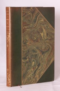 Paris, Ancienne Maison Quantin, Librairies-Imprimeries Réunies, 1895 (achevé d’imprimer du 27 novembre 1894).In-4 (30 x 20), demi-maroquin et coins vert, dos lisse orné, tête dorée, la couverture et le dos conservés d’un seul tenant, iv-230 p. Abondamment illustré de dessins d’Albert Robida, dont des planches hors texte, certaines en couleurs. Exemplaire sur papier vélin tiré à 1.000 exemplaires numérotés (n° 291; après 30 exemplaires de luxe sur Japon). Enrichi d’une lettre autographe d’Octave Uzanne. Dos lég. insolé, sinon bel exemplaire.
