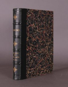 Paris, Cadart et Luquet, Editeurs, 1865. In-folio (34 x 25,5), demi-chagrin de l’époque vert foncé (très lég. usure des mors), dos à 4 nerfs, titre et fleurons dorés, 2 p. (introduction et prospectus) et 13 eaux-fortes au format 29 x 21, collés par la marge gauche sur du carton jaune (complet). En belle condition. Relié à la suite : Annuaire des Beaux-arts, 1875 et 1876. Paris, Imprimerie Beillet. 2 années au format 33 x 24,5. En très belle condition.