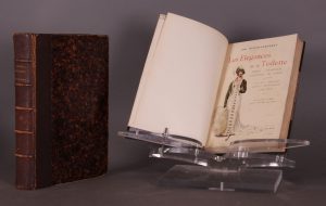Paris, Librairie Historique et Militaire Henri Vivien, 1900.Grand in-8 (26 x 16,5), demi-chagrin marron, dos à 5 nerfs, titre doré, vii-563 p.-1 f. (errata). Une planche en couleurs de Job en frontispice, 3 planches en couleurs hors texte. Mors frottés avec début de fendillement dans le haut, nerfs frottés, coins et bords des plats usés. Joint : GRAND-CARTERET (John). Les Elégances de la toilette. Robes - chapeaux - coiffures de style. Louis XVI - Directoire - Empire - Restauration (1780-1825). 243 gravures de modes dont 32 hors-texte en couleurs. Paris, Albin Michel, Editeur, s. d. (8ème édition). In-8 (22 x 15), demi-chagrin et coins de l’époque, dos lisse, pièce de titre maroquin rouge, tête jaspée, les plats de la couverture conservés, xlviii-198 p. Sauf le dos insolé et petits coups à la coiffe supérieure, bon exemplaire.