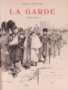 RICHARD (Capitaine). La Garde (1854-1870). Ouvrage illustré de 380 gravures dont huit titrées en deux teintes et huit en couleurs d’après les aquarelles de Charles Morel.