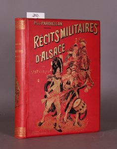 Paris, Librairie Française et Etrangère Albin Michel, s. d. In-folio (38 x 27), cartonnage historié rouge d’éditeur (Strasbourg, Imprimerie Alsacienne), le premier plat de la couverture conservé, iii (préface)-394 p. Abondamment illustré de planches hors texte, gravures par Frédéric Régamey, planche à déplier de la bataille de Woerth. Bel exemplaire de cet important ouvrage.