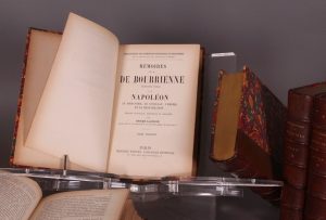 Paris, Garnier Frères, Libraires-Editeurs, 1899-1900.5 vol. petit in-8 (18,5 x 12), demi-maroquin brun, dos à 5 nerfs, titre et tête doré. Reliure lég. frottée. Ancien condisciple de Bonaparte à Brienne, Bourrienne devint son secrétaire par la suite. (Tulard, 211).