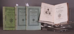 Paris, chez Ladvocat, Libraire de S.A.R. le Duc d’Orléans, 1833.2 vol. in-8 (21,5 x 13,5), broché, couverture imprimée sur papier vert pâle, 391-viii (L’éditeur au public; interversion des derniers feuillets, sans perte), et 452 p. Illustré d’un portrait en frontispice et de fac-similés. Bel exemplaire. Œuvre d’un «teinturier», jugée assez exacte par Valérie Masuyer, dame d’honneur de la Reine Hortense (Tulard, 54).Joint : NAPOLEON. Lettres de Napoléon à Joséphine, pendant la première campagne d’Italie, et lettres de Joséphine à Napoléon et à sa fille. Paris, Firmin Didot Frères, Libraires, 1833. 2 vol. in-8 (23 x 14), broché, couverture imprimée. Illustré de 7 fac-similés. Edition originale. Bel exemplaire.