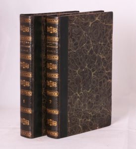 Paris, à la Librairie Universelle de P. Mongie aîné, 1825. 2 vol. in-8 (21 x 13), demi-maroquin vert foncé de l’époque, dos lisse décoré, tranches mouchetées bleues, plats de papier à la cuve. Ex-libris Lord Rosebery, Premier ministre anglais (Durdans Library); et Biblioteca Ludolf; étiquette de marchand F. Casella, Naples. Bel exemplaire de cette importante étude sur les événements de 1813 par l’auteur de la célèbre biographie de Napoléon illustrée par Raffet.