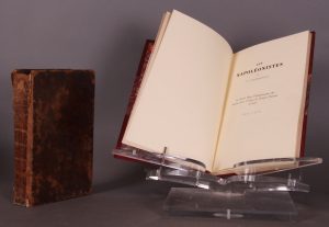 Amsterdam, bij Hendrik Gartman, 1816. In-8 (21,5 x 12,5), plein veau de l’époque (reliure usée), xvi-300-172 p. Carte du champ de bataille de Waterloo à déplier à la fin. Etude néerlandaise de la campagne de 1815.Joint : FOURMESTREAUX (P. de). Les Napoléonistes. La Société Belge Philanthropique des Anciens frères d’Armes de l’Empire Français à Gand. 1841-1873. Bruxelles, s. d. In-8 (25 x 16), demi-chagrin et coins grenat, dos à 5 nerfs, titre et tête dorés, les plats de la couverture conservés. Illustré. Premier mors fendillé près de la coiffe supérieure, sinon bel exemplaire.