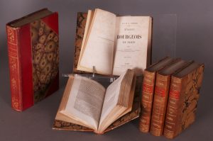 Paris, Librairie Nouvelle, 1856.5 vol. in-12 (17 x 10), demi-veau de l’époque, dos orné, pièce de titre maroquin rouge, les plats de la couverture conservés. Réédition des célèbres mémoires du docteur Véron (1798-1867), qui fut directeur de journal, directeur de l’Opéra, etc. Joint : MUEL (Léon). Gouvernements, ministères et constitutions de la France depuis cent ans. Précis historique des révolutions, des crises ministérielles […] Paris, Mouillot, 1890. In-8 (23 x 14), demi-maroquin et coins rouge de l’époque, dos lisse orné, tête dorée. Carte à déplier. Bon exemplaire.