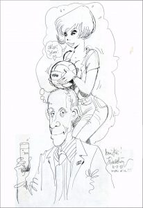 Dessin original au stylo-bille, 43 x 30. Au verso d’un set de table en papier. Signé «FWalthéry» et daté «11-2-93». Joint : Paul FUNKEN. Projet de menu. Gouache sur carton dépliant, 25 x 25. En bon état. Joint : JAMIC. Les 30 ans de RTL. Planche originale, 48 x 36,5. Sous papier calque indiquant les couleurs de la planche à l’imprimeur. Papier collant au verso de la planche, petits manques au calque, sinon en bonne condition.