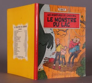 Edition originale. Couverture souple. Dos rouge, lég. pliures aux coins du 1er plat, petites taches au 4ème plat. Quelques rousseurs en page de titre, sinon en très bonne condition. Points Tintin présents. Joint : TIBET. Les Aventures de Chick Bill. Le Chaud Fauve et le Faux Chauve. Editions du Lombard, 1977. En très bon état. Joint : TIBET. Collection Chick Bill. Le Troc truqué de Dog Bull. Dargaud Editeur, 1971. Couverture souple. Usures au dos et aux plats, pliures aux coins, sinon en bon état.