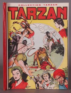 Du 17-7-1947 au 23-10-1947 (du N°46 au N°60). Cartonnage (36 x 27) présentant un dessin d’Ibis l’invincible en couverture. Dos bordeaux. Ce volume comprend Les Aventures de Capt. Marvel Junior; Liana, fille de la jungle; Les aventures du Professeur Pipe; La Famille Patchoum; Lastuce, Crémolet, et leur chien Achille; etc. En noir et blanc et en couleurs. Cachet Louis Barber au 2ème plat et en p.1. Lég. usures aux plats. Très bon état d’ensemble. Joint : OK. Album N°11. Du 14-10-1948 au 27-1-1949 (du N° 119 au N° 134). Cartonnage (38 x 28), dos rouge. Coins émoussés, dos usé, sinon en très bonne condition. Joint : Collection Tarzan. Tarzan. Les Hommes léopards. Terreur dans la brousse. Tarzan chez les pygmées. Etc. Cartonnage (30 x 23), dos rouge. Usures aux plats, cachet Louis Barber en page de garde, sinon en très bonne condition.