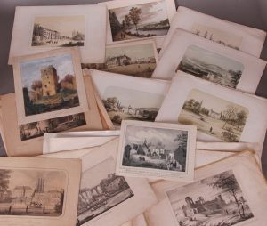 25 lithographies, de 17,5 x 24 jusqu’à 32 x 45. Lég. insolations, petites déchirures et taches dans des marges, rousseurs. Joint : [Châteaux de Wallonie]. 20 lithographies en couleurs, de 22 x 27 jusqu’à 24,5 x 33. Lég. insolations, petites déchirures et taches dans des marges, rousseurs. Joint : [Châteaux de Wallonie]. 2 gravures, dont une en couleurs rehaussée d’aquarelles. 14 x 20,5 et 21 x 17,5. Lég. insolations et taches dans les marges.