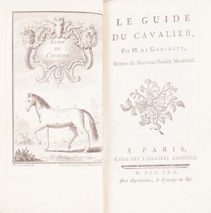 [Cheval]. d’HARAMBURE. Elémens de cavalerie, ouvrage élémentaire, propre aux officiers généraux, adjudans-généraux, chefs de corps, aides-de-camp, et commandans d’escadron. Seconde édition. Paris, chez Magimel, 1795. In-8 demi-rel dos...