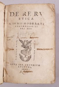 814 ; Baudrier VIII, 84. USTC 122262]. À la suite : MERULA Giorgio- Beroaldo, Filippo.- Priscarum vocum, in libris de re rustica, enarrationes… In libros XIII Columellae annotationes. De dierum generibus, simulque de umbris et horis, quae apud Palladium. Tomus III. Lyon, apud Sébastien Gryphe, 1535. In-8 92 ffnch. le dernier blanc. [a-l8 ; m4] [Adams S 814 ; Baudrier VIII, 84 ; USTC 122263].
