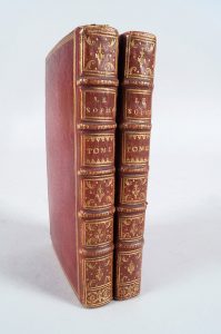 l’époque). Ouvrage illustré d’un frontispice, de 2 vignettes en en-tête, de 2 vignettes sur les titres par Cochin et de 4 planches gravées de Clavareau. (Bon exemplaire, coins usagés, accroc à une coupe).