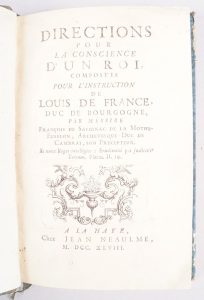 FENELON. Directions pour la conscience d’un roi, composées pour l’instruction de Louis de France, duc de Bourgogne. La Haye, Jean Neaulme, 1748 (manque le frontispice, rel post XIXème).