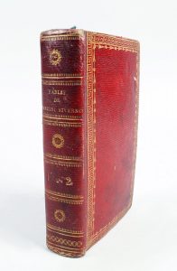 MANCINI-NIVERNOIS. Fables de Mancini-Nivernois, publiées par l’auteur. Paris, imprimerie Didot Jeune, 1796. Édition originale. Frontispice portrait par Augustin de Saint-Aubin. 2 tomes en un vol in-12, maroquin rouge à grains longs, roulette...