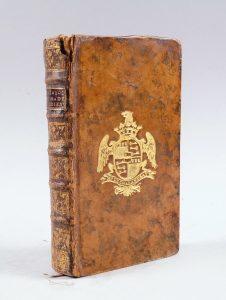 avant propos (10 ff). 316 pages. Suivi de : CF. JULLIOT. Catalogue raisonné des porcelaines de qualités supérieures, tant anciennes, première forte, qu’ancien Japon & la Chine : d’effets précieux d’anciens Lacqs, riches meubles de Boule, & bijoux, faisnant partie du cabinet de feu M. de Jullienne, chevalier de l’ordre du roi, amateur honoraire de l’Académie royale de Peinture. 80 pages. In-8 veau marbré, reliure aux armes du baron de Chalandray , dos à nerfs orné avec pièce de titre en maroquin rouge, tranche marbrée. (Coiffe supérieure). Accompagnée d’un commentaire manuscrit de Chalandray sur la vente après décès et les achats qu’il y a faits. Jérôme-Louis Parat, baron de Fontaine et de Chalandray, receveur général des finances de Lorraine et Barrois et bibliophile.