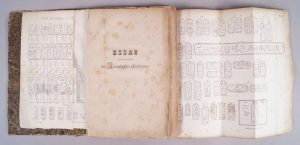 Henry SALT. Essai sur le système des hiéroglyphes phonétiques du Dr Young et de M. Champollion, avec quelques découvertes Paris, Bobée et Hingray, 1827. In-8, broché, non rogné, couverture imprimée. Première édition française, illustrée...