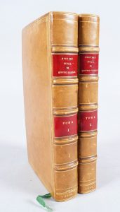 Ouvrage illustré de 2 frontispices, et de 22 planches gravées de J. Harrewyn. Le premier volume contient le coureur de nuit, l’avanturier buscon, et les lettres du chevalier de l’Espagne ; Le second, les sept visions. Bel exemplaire.