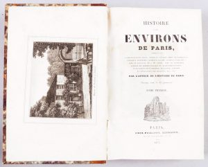 Georges TOUCHARD-LAFOSSE.Histoire des environs de Paris, comprenant la description des villes, bourgs et villages. Paris, Philippe, 1837. 4 vol in-8 demi-veau brun, dos lisse orné. Frontispice sur le premier vol et planches. Ed originale (manque le...