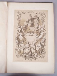 roi. Bruxelles, Jules Géruzet, 1856. In-folio, demi-percaline verte à coins, dos lisse muet (reliure du XX° siècle avec la couverture). Ouvrage illustré du portrait du roi, d’un frontispice lithographié sur fond teinté, de 6 planches lithographiées (dont 5 en couleurs) représentant les décorations et la réception du roi à Bruxelles, et de 17 planches coloriées représentant les chars du cortège. Bon exemplaire.