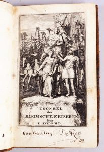 Lud Smids TOONEEL VAN STAAT. Der roomsche keiseren. Amsterdam, Adriaan Schoonebeek, 1694. In-12 basane dos à nerfs orné. Faux-titre gravé et vigentte de titre et 12 illustrations pleine page dans le texte.