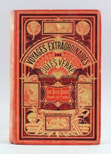 Jules VERNE. Sans dessus dessous. Chemin de France. Paris, Bibliothèque d’éducation et de récréation J. Hetzel & Cie. Cartonnage d’éditeur aux deux éléphants et titre dans le cartouche. (Dos usé).