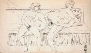 Exemplaire enrichi d'un dessin libre à l'encre (inséré entre les p.28-29 du tome II), qui met en scènes les principaux protagonistes du roman, madame d'Avenel, son amant monsieur de Serrigny, et sa fille Edmée.