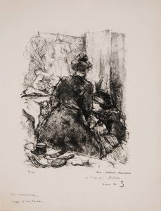 Premier cahier, illustré de 6 eaux fortes de Dignimont. - Deuxième cahier, illustré de 6 eaux fortes de Daragnès. - Troisième cahier, illustré de 6 lithographies de Luc-Albert Moreau, et enrichi d'une lithographie supplémentaire (" En tournée, loge d'actrice "), numérotée 4/10, titrée, signée par l'artiste avec envoi à Pierre Bérès. - Quatrième cahier, illustré de 6 eaux fortes de Dunoyer de Segonzac. (Monod 2982-2985).