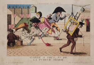 Curieuse et exceptionnelle collection, établie avec soin. Elle s'ouvre sur " Le moine au privé ". On y trouve des scènes de lavement (dont une petite gravée au XVIIIe s. et imprimée sur vélin), et tout le catalogue des situations cocasses que l'on peut imaginer. La majeure partie des gravures sont datables vers 1820 - 1850, la plupart sont des lithographies, 44 sont en couleurs (la plupart coloriées à la main à l'époque). La plus ancienne gravure du recueil doit être " Le chieur ", par B. Moncornet.