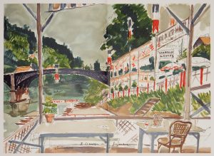 18 compositions d'André Dunoyer de Segonzac dont 4 planches en couleurs à double page, gravées sur bois et 14 illustrations en noir, dont 10 à double page. Tirage limité à 313 exemplaires numérotés : un des quelques exemplaires nominatifs sur grand vélin d'Arches réservés aux graveurs, imprimeurs et collaborateurs, signé par l'artiste et l'auteur, celui-ci imprimé pour Adam Saulnier. (Monod 5989).