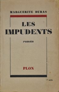 DURAS (Marguerite). Les impudents. Paris, Plon, 1943. In-12, broché (dos strié, signature au faux-titre). Rare édition originale (pas de grand papier) du premier roman de Marguerite Duras, refusé par Gallimard avant d'être publié chez Plon....