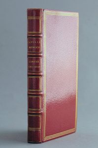 FRAIPONT. MENDES (Catulle). Contes choisis. Paris, Charpentier, 1886. In-32 (12,5 × 8,5 cm), [2] f., 280 p., 2 eaux-fortes par Gustave Fraipont, reliure maroquin rouge, dos à 5 nerfs, auteur et titre doré, caissons bordés d'un double filet doré,...