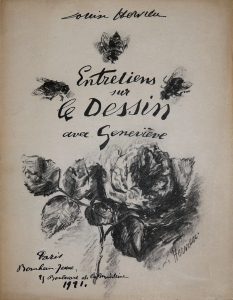 HERVIEU (Louise). Entretiens sur le dessin avec Geneviève. Paris, Bernheim-Jeune, 1921. Petit in-4, 15 p., broché. Ouvrage dédié par l'artiste Louise Hervieu (1878-1954) à son élève Geneviève Doré. Illustré de 2 planches et de compositions...