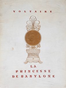 HEUBNER. VOLTAIRE (François-Marie Arouet). La Princesse de Babylone. Munich, J. Schröder, 1922. In-4, 79 p., [2] f., reliure éditeur parchemin d'éditeur, dos lisse avec titre doré, décor doré et titre rouge au plat supérieur, tête dorée,...