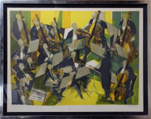 HILAIRE (Camille) (1916-2004) L'orchestre. Lithographie en couleurs, signée en bas à droite et justifiée E.A. X/XXX. Épreuve d'artiste. 44,5 × 54,5 cm, à vue Cadre à baguettes d'aluminium. On joint : PLANSON (André) (1898 - 1981) Deux femmes...