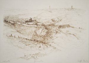- 1 dessin de 55 × 75 cm, encre bistre sur fort papier vélin d'Arches, titré " Harava ", signé, avec envoi, et daté 1980.