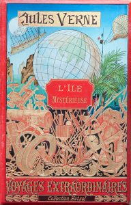 VERNE (Jules). L'île mystérieuse. P., Hetzel (Bibliothèque d'Education et de Récréation), [entre 1894 et 1913], grand in-8, cartonnage polychrome de l'éditeur, dos à l'ancre, le plat supérieur reprend le motif du " portrait collé ", avec le...