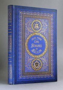 VERNE (Jules). Cinq semaines en ballon. Voyage de découvertes en Afrique par trois anglais. Illustrations par MM. Riou et de Montaut. Paris, Hetzel (Bibliothèque d'Education et de Récréation), [vers 1875]. Grand in-8, cartonnage doré de...