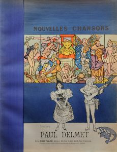 WILLETTE. DELMET (Paul). Nouvelles chansons. Lithographies de Ad. Willette. Paris, Tellier, s.d. In-4, [98] p. dont 17 p. de lithographies, reliure époque bradel demi-maroquin chocolat à coins, dos lisse, titre et fleurons dorés, tête doré,...