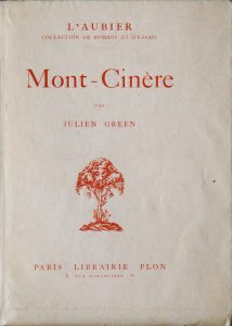 GREEN (Julien). Mont-Cinère. Paris, Plon (L'Aubier), 1926. In-12, broché, couverture rempliée, chemise et étui toilés rouge, pièce de titre basane grenat (dos de la chemise passé ; en partie non coupé, témoins conservés). Rare édition...
