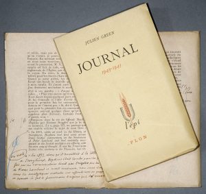 GREEN (Julien). Journal, [tome IV] : 1943-1945. Paris, Plon (L'Epi), 1949. In-12, broché (non coupé, témoins conservés). Édition originale : un des 46 exemplaires sur pur fil de Lafuma à Voiron (3e papier après 20 Japon et 17 Hollande), et un...